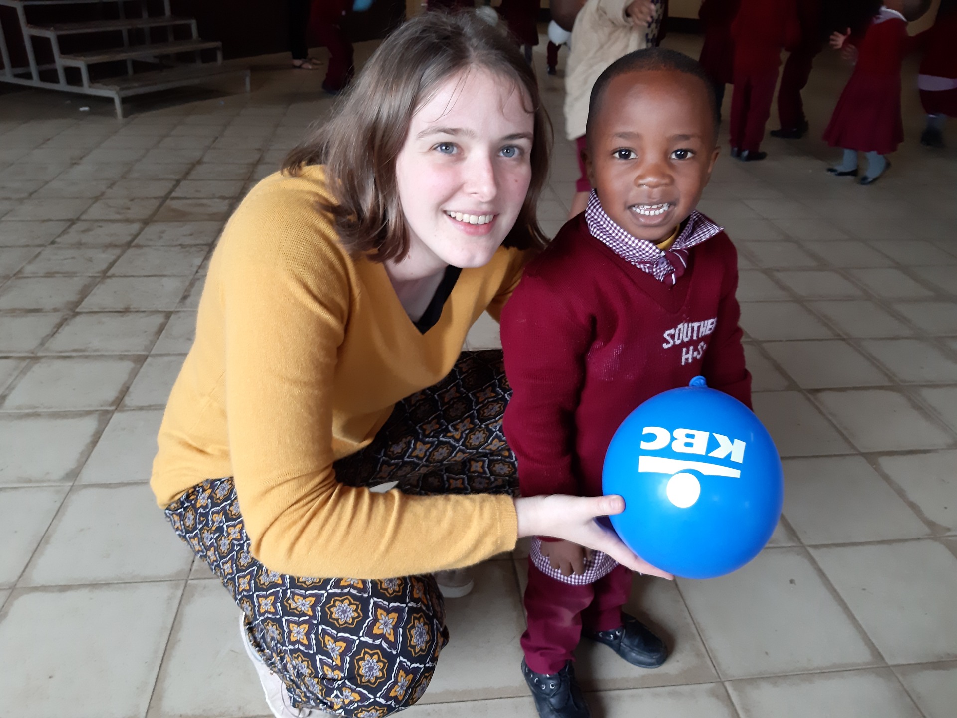 We gaven ook een bewegingsles in class 1 met ballonnen. Doordat de kinderen nog maar heel weinig Engels begrijpen toonden we heel veel zelf voor en gebruikten we korte zinnetjes. (4.6. creativiteit tonen, 2.7. culturele communicatieve competentie) Ze hadden heel veel plezier met de ballonnen. Ze schrokken wel telkens toen er een ballon stuk ging. Toen ze merkten dat we niet kwaad waren en ze gewoon een nieuwe ballon kregen, gingen ze even enthousiast verder met spelen. Ook tijdens de weekends zijn ballonnen heel populair bij de kinderen. Doordat er in het weekend geen activiteiten gepland staan komen ze bij ons iets vragen om te spelen: bellenblazers, ballonnen...