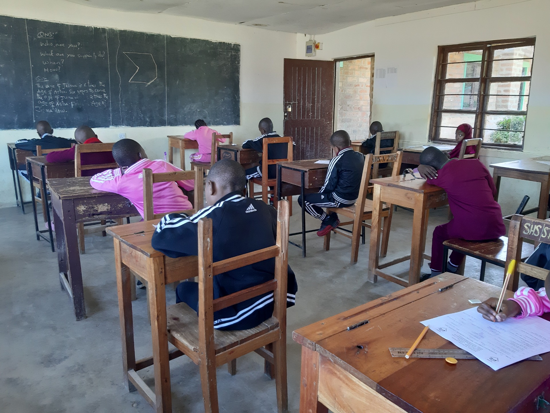 Ik hiep toezicht houden tijdens de examens in class 4. Tijdens het rondlopen in