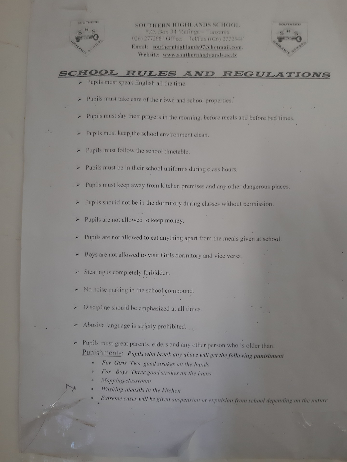 Toen ik het blad met regels las was ik echt geschrokken. Ik had al gehoord dat