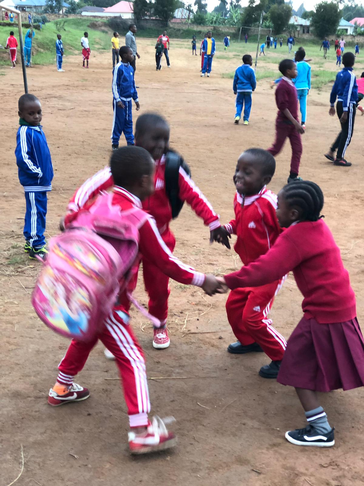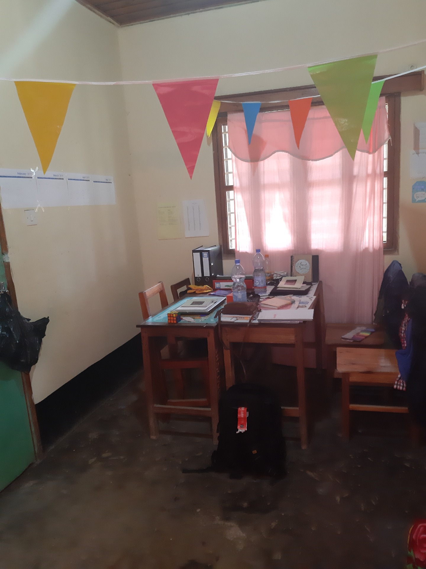 Toen we aankwamen werden we ontvangen door verschillende leerkrachten. Samen met de leerlingen werden onze valiezen uit de regen gezet. We kregen een rondleiding op het schooldomein. We schrokken wel even toen we door alle lokalen en gebouwen liepen, we hadden niet verwacht dat de school zo groot was. Overal waar we kwamen werden we voorgesteld aan de verschillende leerkrachten en headteacher Jason. (2.6. culturele relationele competentie) Dit was ook al een goede oefening voor ons Engels. Hier op school wordt er vooral Engels gesproken. (1.2. een vreemde taal spreken, 1.3. gesproken tekst in een vreemde taal kunnen begrijpen) De leerlingen krijgen alle vakken in het Engels behalve de vakken Frans en Swahili.
