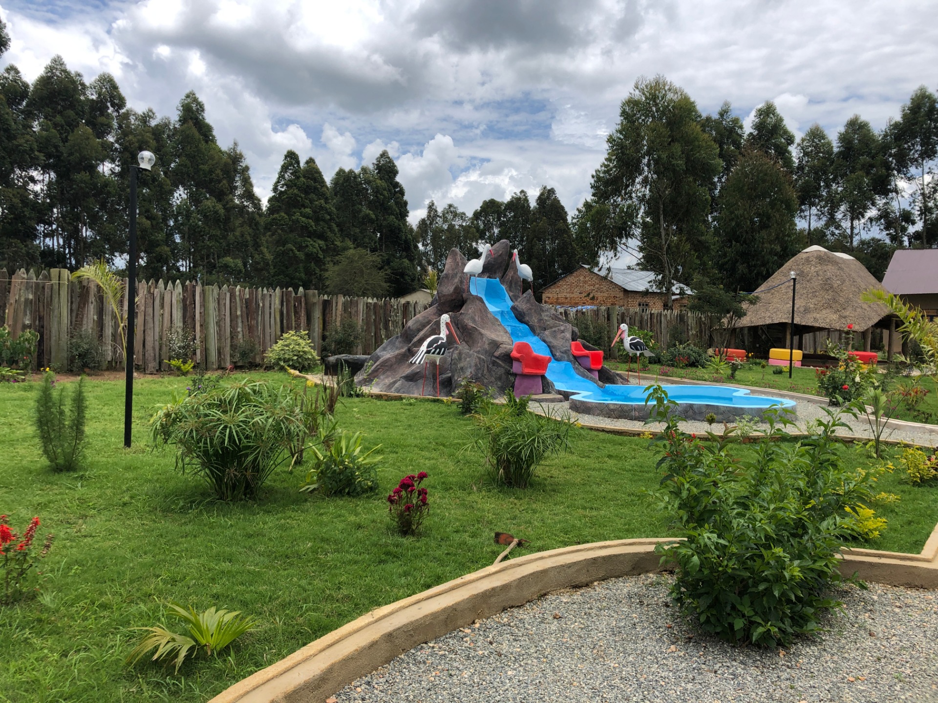 Vanop de verharde weg namen we een afslag richting de theeplantage. Teacher Ally had ons vooraf verteld dat hij niet wist of het bezoek door zou kunnen gaan. We moesten eerst weten of het geregend had. We vonden dit eerst raar, waarom zouden we de theeplantage niet kunnen bezoeken als het geregend had. Maar toen we de afslag namen werd ons al snel duidelijk waarom. We reden op een onverharde baan met heel veel putten. Als het teveel geregend zou hebben was deze baan niet berijdbaar. Gelukkig had het niet geregend maar toch was deze weg een hele belevenis. We de auto ging van links naar rechts om putten te ontwijken. Als we dan toch in een put reden zaten we bijna met ons hoofd tegen het dak van de auto. Op plaatsen waar de weg heel erg nat lag had begon de auto te slippen! Na de hobbelige rit waren we heel erg blij als we bij aankwamen bij lake Ngwazi en uit de auto konden stappen. We konden hier genieten van het mooie uitzicht en het mooie weer. Heel veel foto's later stapten we opnieuw in de auto en zetten onze trip verder.