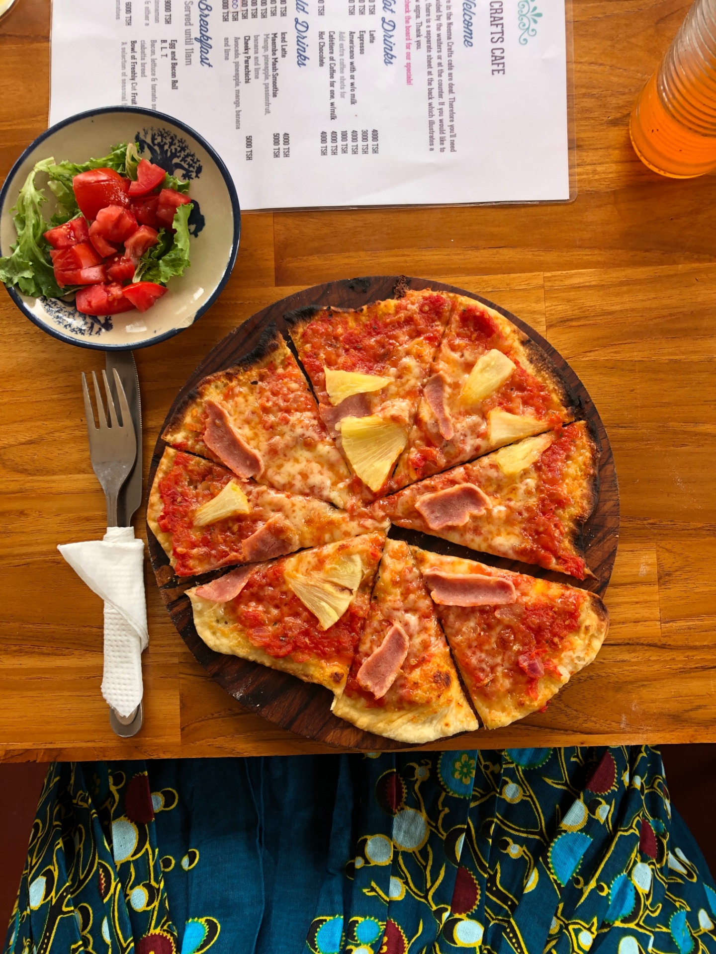 Faraja. We hadden het plan om hen te laten kennismaken met pizza, een van onze